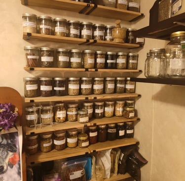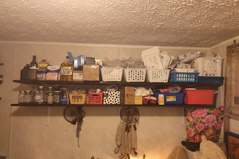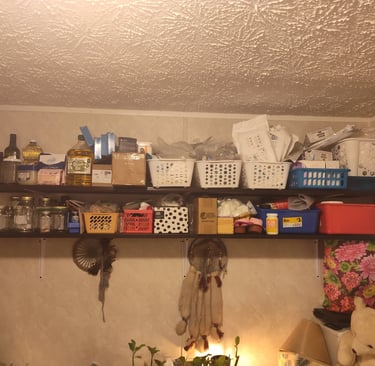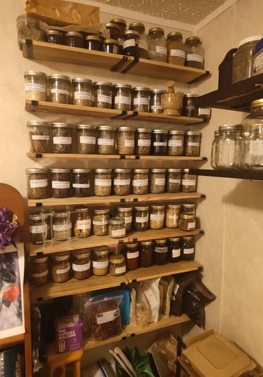 And finally this weekend Christine and I re did the herb shelves. I got new ones online that worked out well. The soap making shelf and the medical shelf are repurposed bed rails form a local 2nd hand store. It's nice to have better shelving than that old plastic shelf set.. And room to work in the office. A few more things and we'll be able with minimal work be able to have someone use it as a bedroom for visits!