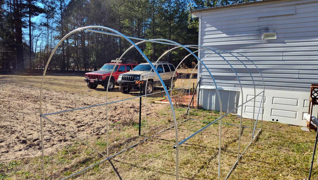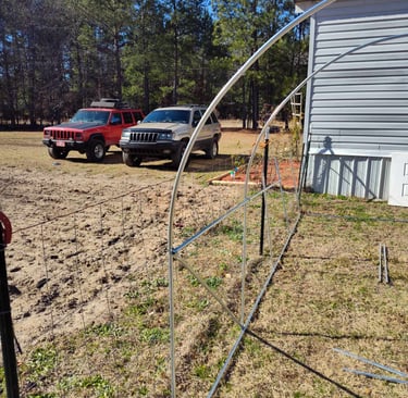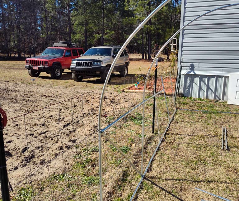 So its off to the local Tractor Supply.(We live WAY out in the woods of South Carolina and it and Walmart are the only things open on a Sunday. Well back to the house and get the hoops finished and start the walls.