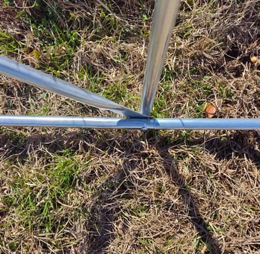 Now I want y'all to focus on the top of the hoop. There is a tube that runs the length of the greenhouse. to give support. Well at this point I was out of the shorter bolts and for some reason had 5 of the long ones left over. WTH??? So I looked at the tubes and the short bolts at the very apex of the hoop and there was NO way that the ridge pole was attaching to those short bolts. I looked at the 5 long bolts left and again at thje ridge pole....... And BOOM it was like Thor smacked me with Mjölnir. Those 5 long bolts go in the apex and those short bolts that I was short are now found! (PS ignore the loose siding, We had a rough storm and this was the first clear day. They have since been re-seated!) We did not take any pictures of us covering it, My wife REFUSED to have pictures taken of her. But it went on easy.