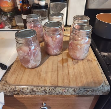 Once I got that done, dried out and then tested, we loaded back up the still frozen beef and pork and the veggies that were still frozen. But were left with a lot of chicken that was still good, but was way to much to cook and then serve, So we canned it.