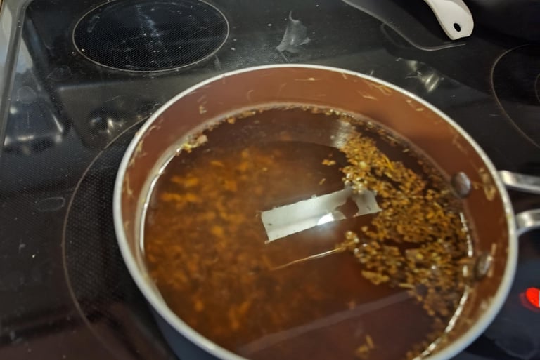 First the "hard" parts. The Barberry and Marshmallow roots. @ 1 onunce by weight of each to 2 cups cold water. Bring to a boil for @ 10 minutes then turn to a simmer for about 20 minutes. Reduce it by half. This is a decoction.